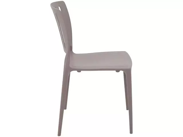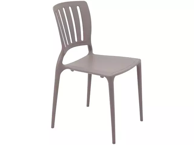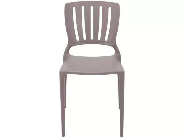 Seu assento fixo e encosto vazado garantem conforto e ventilação, enquanto os pés palito conferem leveza e elegância ao móvel. Além disso, suporta até 182 kg, proporcionando segurança para o uso diário.