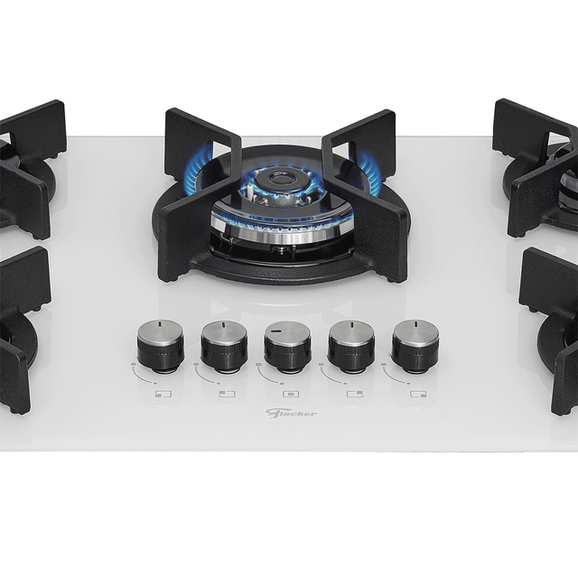 | Potência das Bocas | 1 queimador tripla chama (3700W), 1 queimador rápido (3000W) e 3 queimadores semirrápidos (1630W) |